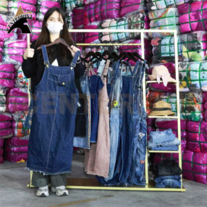 Wholesale Shoulder Strap Denim Skirt With Pocket Second Hand Clothes Import Mix Used Clothing